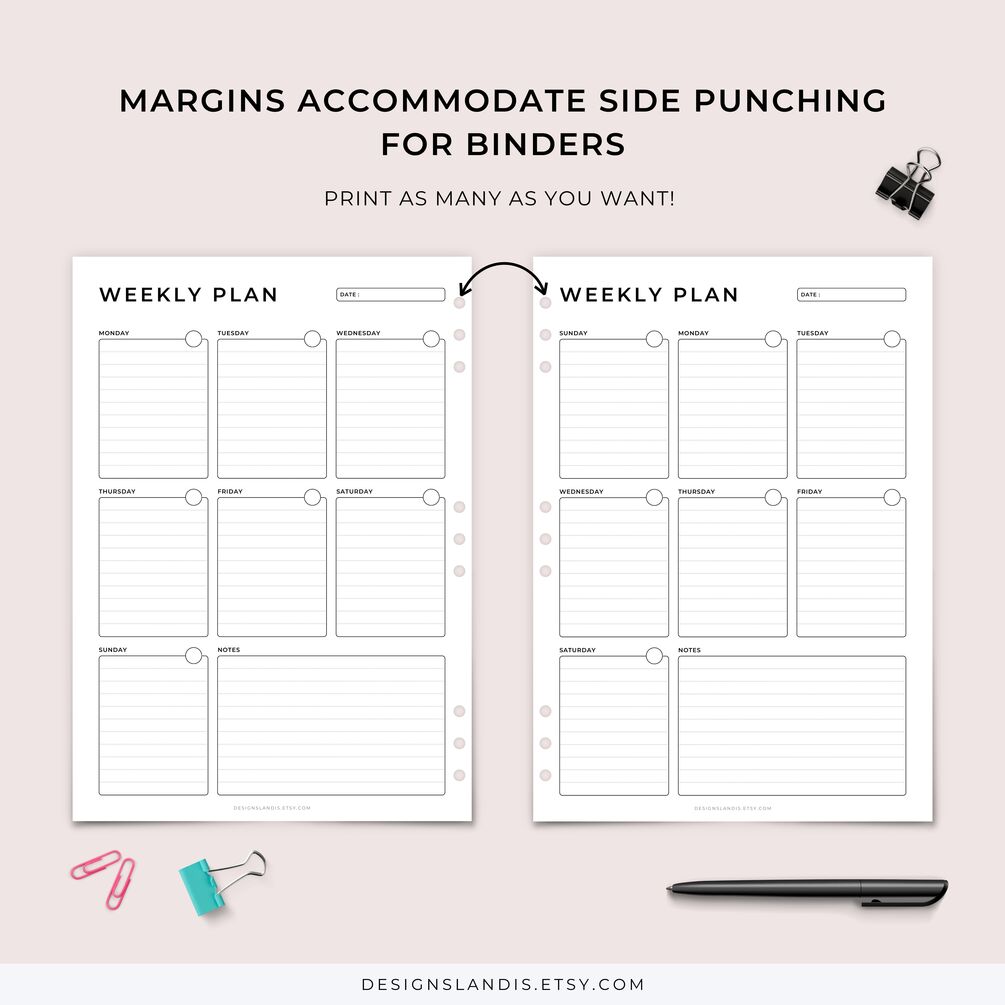 Weekly Planner Printable - 4 Versions - 4 sizes
